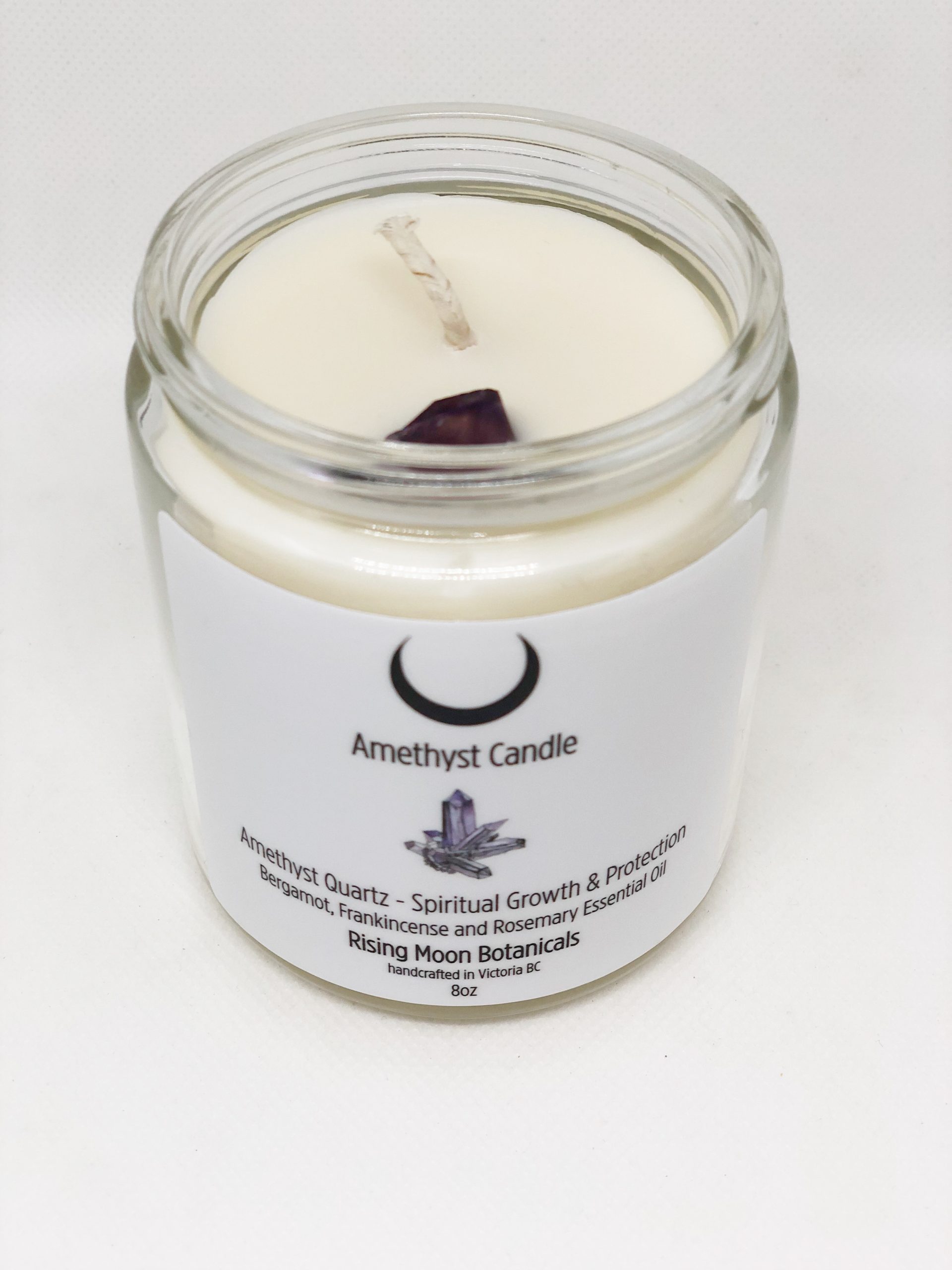 Our Amethyst Crystal Candle is hand-poured and made with soy wax and therapeutic grade essential oils. Once your candle has burned retrieve your crystal and carry it with you or place it in a special space to balance and heal your energy.