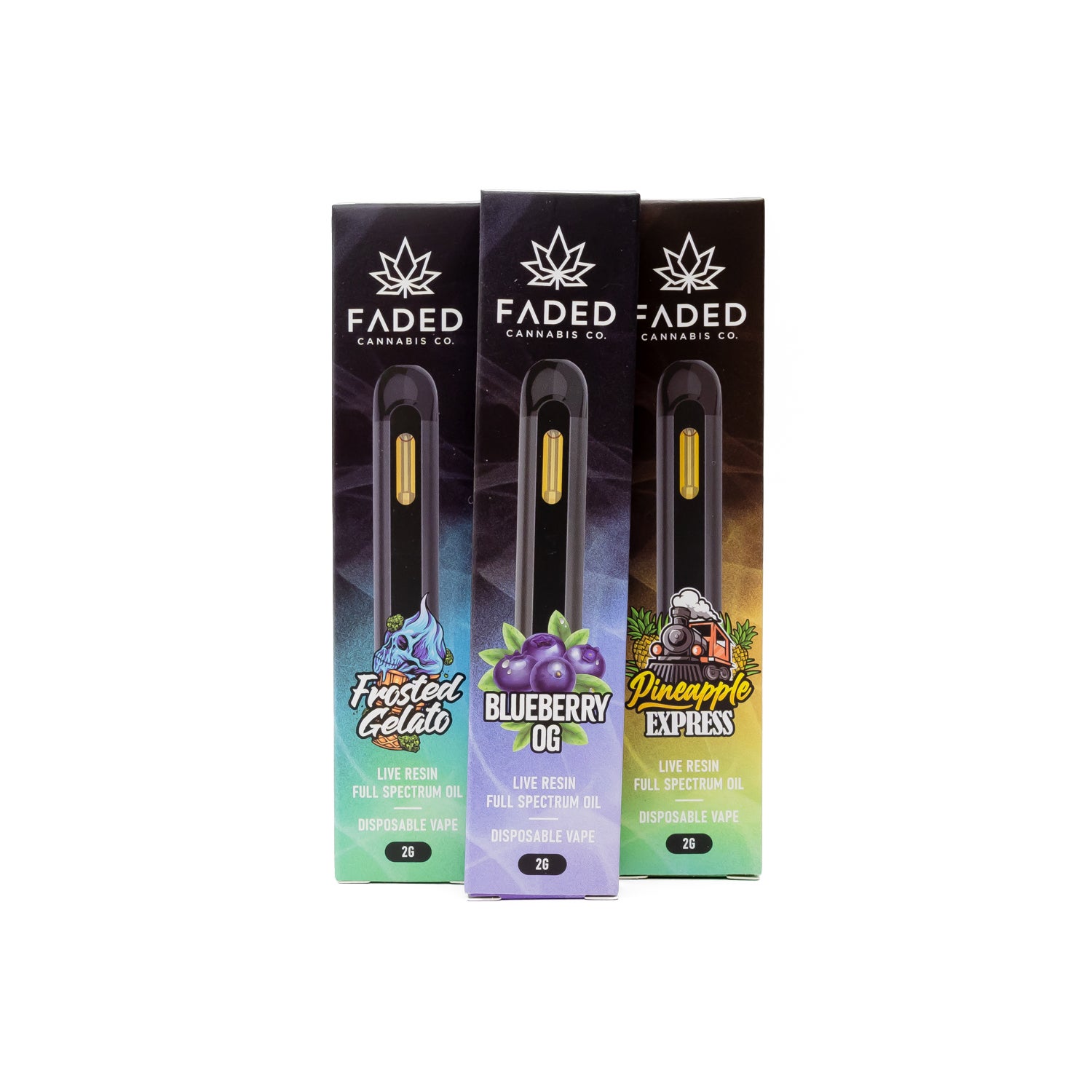 Faded Cannabis Co. 2mL Vaporizer Pens. The vaporizer pens are housed with a 350mAh BBTANK vaporizer that is rechargeable.