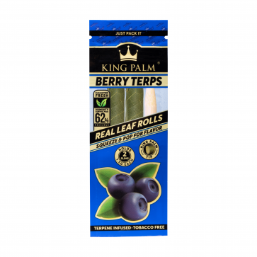 King Palm Berry Terps flavor is available now and one of the great additions to the King Palm Flavor line. Just squeeze and pop the flavor ball in the corn husk tip to activate the flavor anytime. containing 2 Mini Size pre-rolls, one packing stick, and a 1g Boveda humidity pack in each pouch. Each individual Mini Size roll can hold up to 1 gram of flower. You can taste the great flavor without burning or smoking the flavor because the flavor ball will be popped inside the Corn Husk Filter Tip, which should never be smoked.