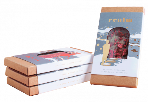Our artisanal chocolate is handcrafted in small batches in beautiful British Columbia, Canada, using only premium chocolatier’s ingredients. Each bar contains 2 (or 5!) grams of psilocybin mushrooms, for a full sensory indulgence. At Realm we feel that a fulfilled life means being in touch with your inner spirit – therefore we value indulging in play, and the joy that it brings. We encourage you to enjoy piece by piece, or share one of our 5g bars with a friend (or 2!) and have an hyperdimensional adventure. It is our sincere wish that our chocolate bars will bring you a joyful experience, in a well deserved treat!